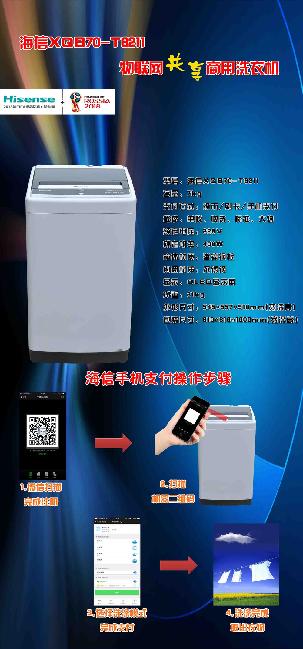 Hisense海信 7公斤XQB70-T6211共享商用波轮洗衣机